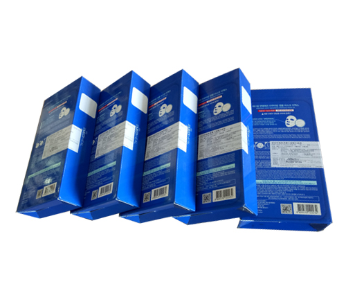 ◆ 應用實例:面膜盒上下面、側面同時貼標。